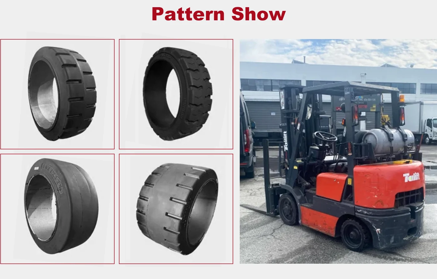 ठोस टायर पर प्रेस भारी-भरकम औद्योगिक टायर हैं जो फोर्कलिफ्ट, प्लेटफ़ॉर्म ट्रेलरों, विमान गैंगवे और अन्य महत्वपूर्ण उपकरणों में उच्च-विश्वसनीयता अनुप्रयोगों के लिए डिज़ाइन किए गए हैं। एक अद्वितीय प्रेस-फिट माउंटिंग सिस्टम के साथ इंजीनियर, ये टायर बेहतर स्थिरता, शून्य अपस्फीति जोखिम और न्यूनतम रखरखाव की पेशकश करते हैं, जिससे उन्हें ऐसे वातावरण के लिए आदर्श बनाता है जहां डाउनटाइम महंगा है और सुरक्षा गैर-परक्राम्य है।